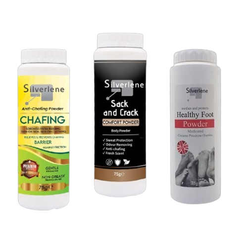 SILVERLENE HEALTHY FOOT POWDER FLYES YOUR ITCHES AND IRRTIATIONS ON YOUR FEET AWAY WITH ONE RUB OF SILVERLENE HEATLHY FOOT POWDER. SIMPLY ADD AND FEEL THE LUXURY OF HAVING ITCH FREE FEET, SOMETHING YOU CAN DO IN MINUTES WHEN YOU HAVE SILVERLENE HEALTHY FOOT POWDER